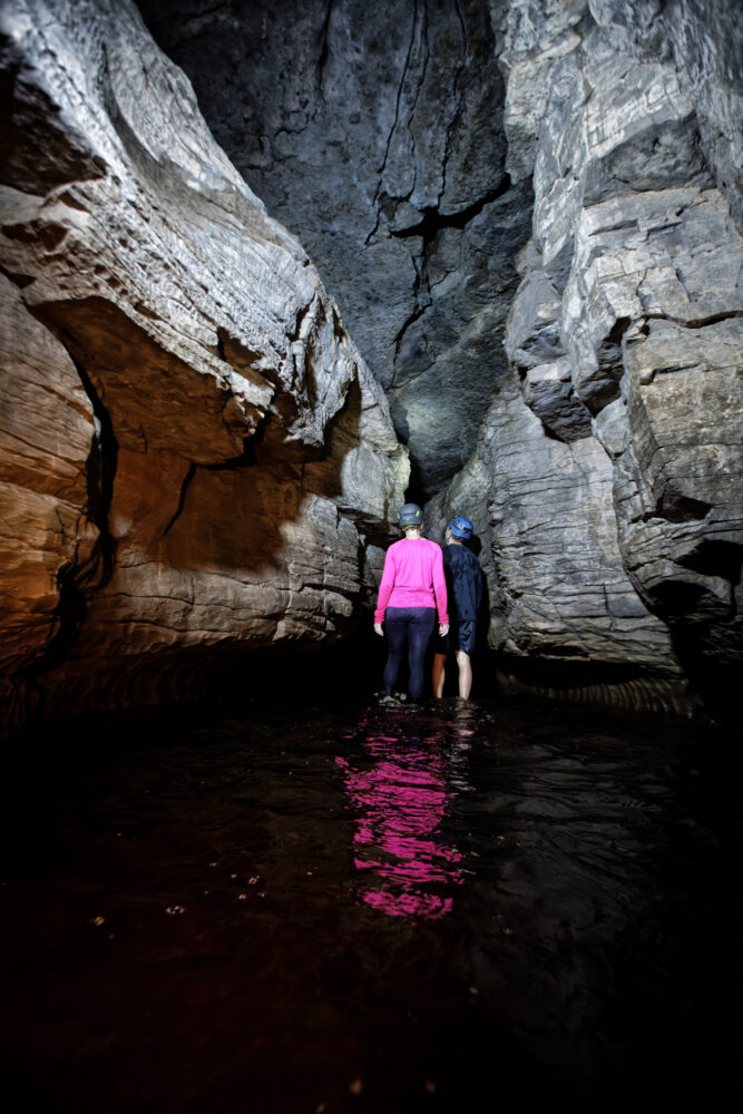 Ce parcours Touristique propose une initiation à la spéléologie. La visite chemine dans un long couloir de dimension impressionnante. Vous y marcherez debout allègrement en ayant de l’eau jusqu’aux genoux. Pendant le parcours, vous pourrez expérimenter quelques galeries secondaires optionnelles qui exigent une reptation dans des couloirs humides et boueux. Une visite adaptée à toute la famille !